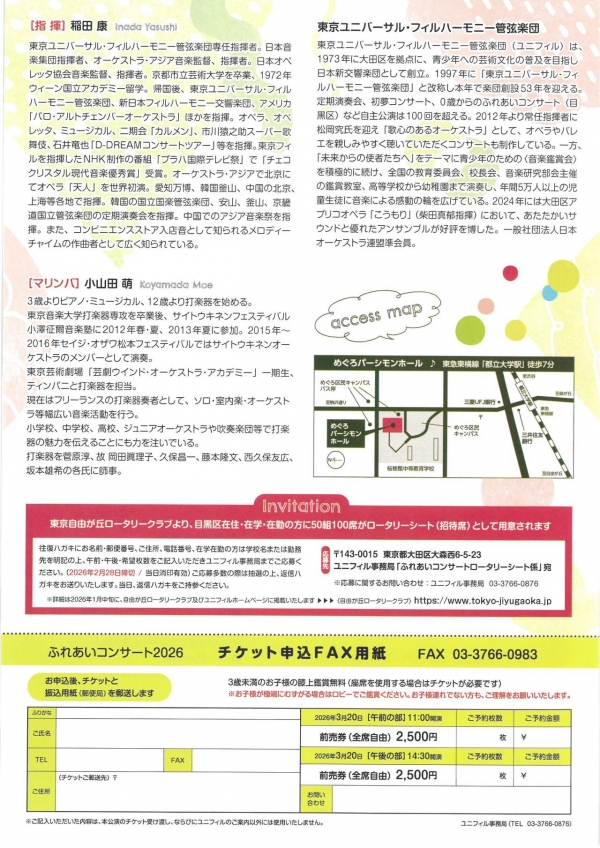 目黒区関係に招待席【プレゼントシート】提供。各回25組 計50組100席