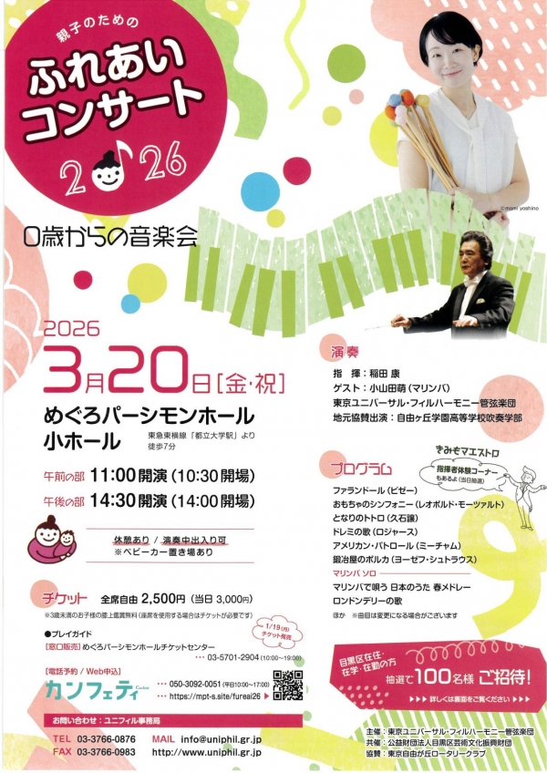 目黒区関係に招待席【プレゼントシート】提供。各回25組 計50組100席
